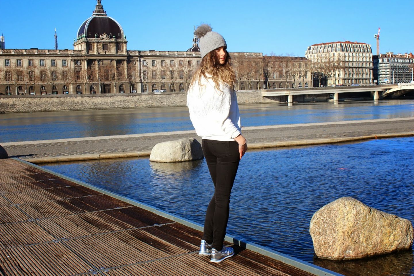 2015 c’est parti mes Jolies ! Pour ce début d’année, c’est une tenue street que je vous propose. Un jeans, un pull, des baskets (p’tites nouveautés) et la journée peut commencer. Ne vous fiez pas au soleil sur les photos, il faisait un froid polaire, d’où mes mains toutes rouges et abimées… Certaines d’entre vous m’ont donné des conseils et des avis sur des crèmes. Je vous en remercie. J’ai beau mettre de la crème, du beurre de karité et autre, le froid ne laisse aucun répit à mes mains. J’aime l’hiver pour les manteaux, les bonnets, les pulls doudous mais moins pour le nez qui coule et compagnie (sans parler du teint aspirine)…