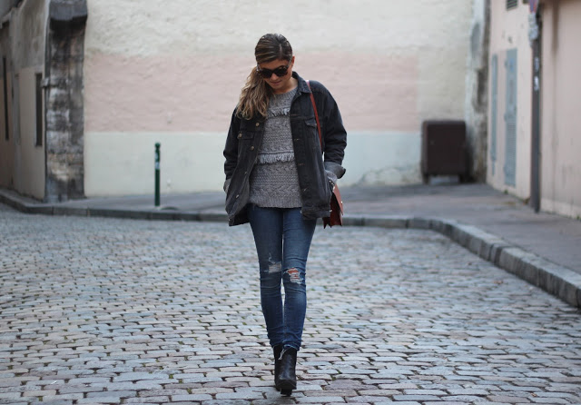 Veste: Asos – Pull*: DebyDebo – Jeans : H&M – Boots*: NewLook – Bagues*: L’Atelier d’Amaya – Lunette*: Jimmy Fairly – Sac : Louis Vuitton