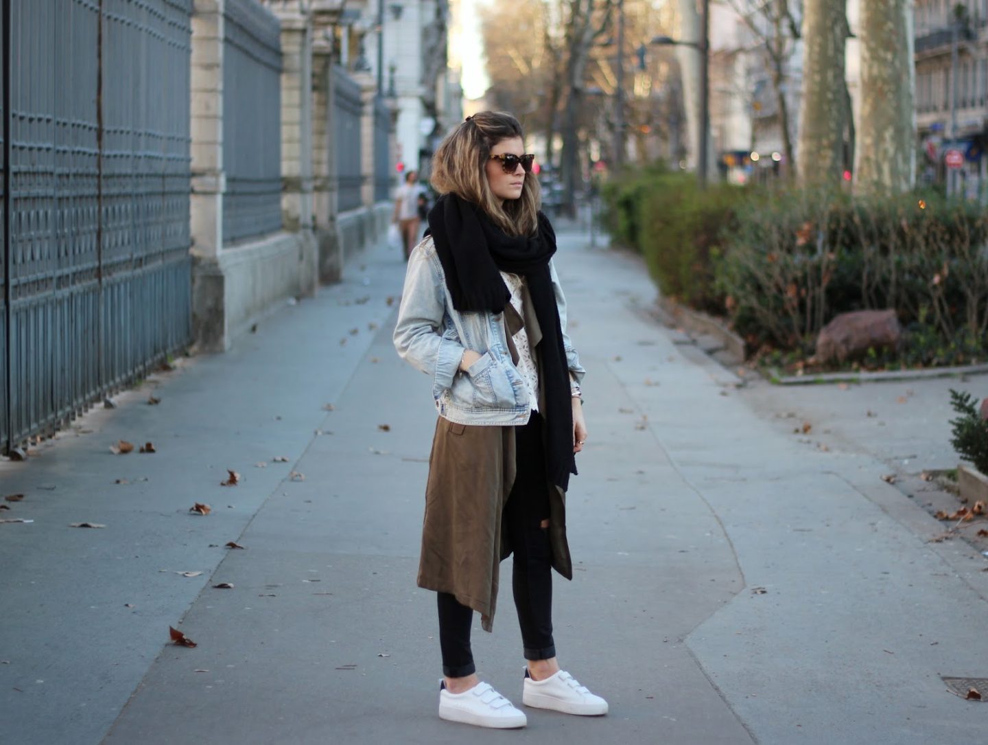 J'aime beaucoup l'idée du long trench et de la veste en jean