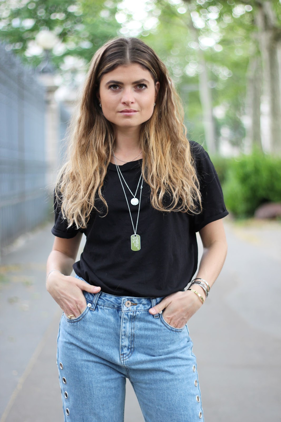 Mom jeans : Pull & Bear – Top : Zara – Chaussures : Pull & Bear – Bijoux*: Mya Bay