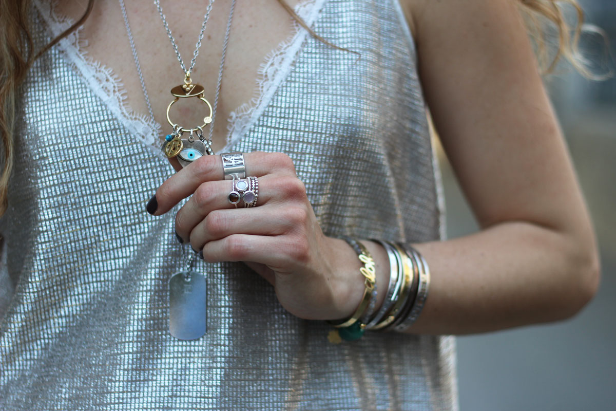 Le thème du mariage était bohème…. Méga fan ! Bizarrement, j’ai longuement hésité sur la tenue. Robe longue avec couronne de fleurs ou robe en dentelle avec des boots ??! Le dilemme. Période de soldes oblige, petit tour rapidos chez Zara. Sans grand espoir de trouver quelque chose, je suis tombée sur cette petite robe argentée à la coupe ample. J’avoue, j’ai pris du L c’était la dernière taille ahah ! La robe étant assez voyante, j’ai opté pour l’accumulation d’accessoires comme les bracelets et les colliers. Une coiffure plutôt simple avec l’effet coiffé/décoiffé.
