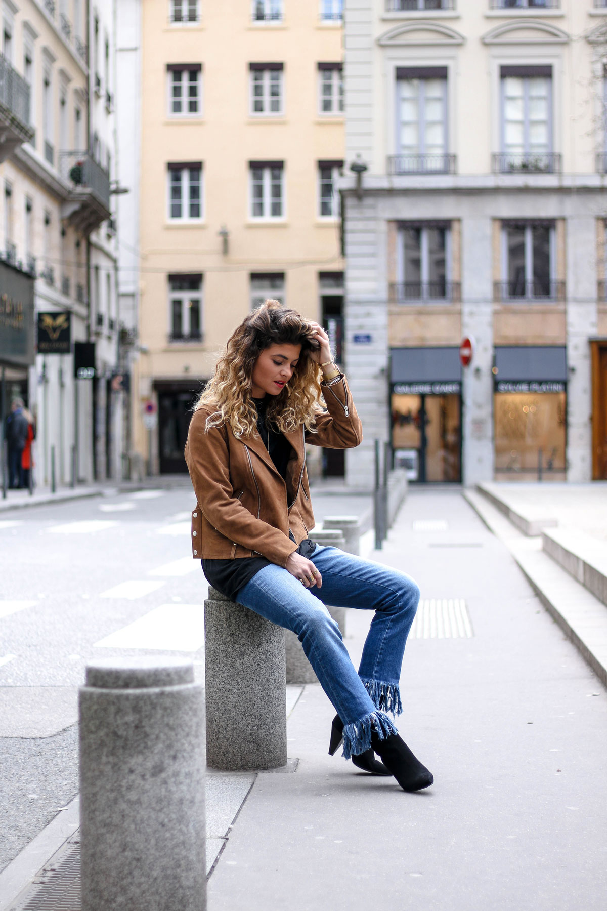 Ce look est canon et la taille du Jeanne choque pas, je trouve que tu le portes à merveille 😉 …jean à franges .., une belle pièce à ajouter sur la wish list de printemps ❤️