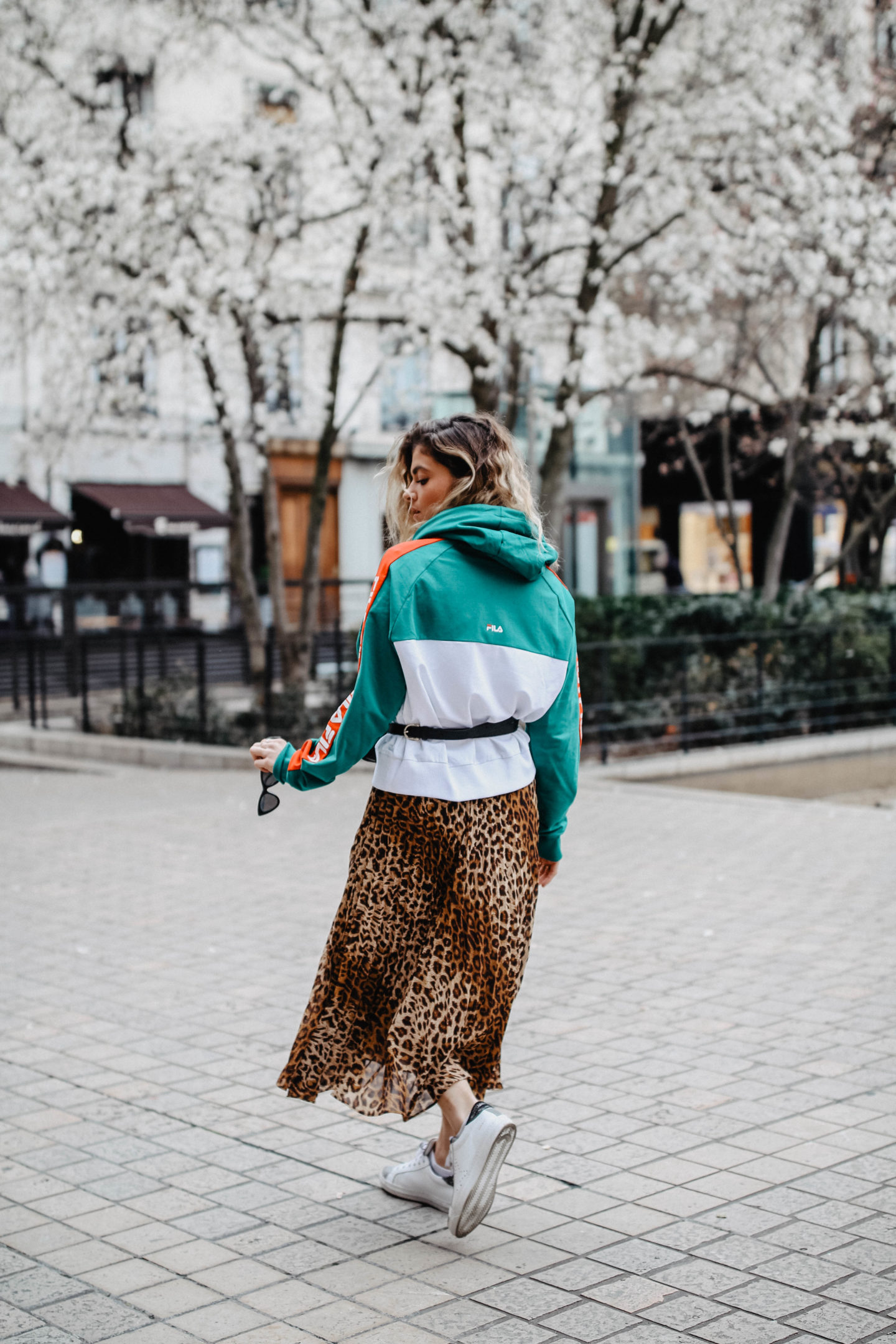 Sur Instagram, je vous avais partagé un preview de ce look et les retours ont été partagés. Pas dans le mauvais sens, mais je pense que l’association du style streetwear via le sweat Fila avec ma jupe longue léopard, a surpris. En même temps, je vous comprends, je n’aurais jamais pensé un jour faire ce type d’association (ahah) !