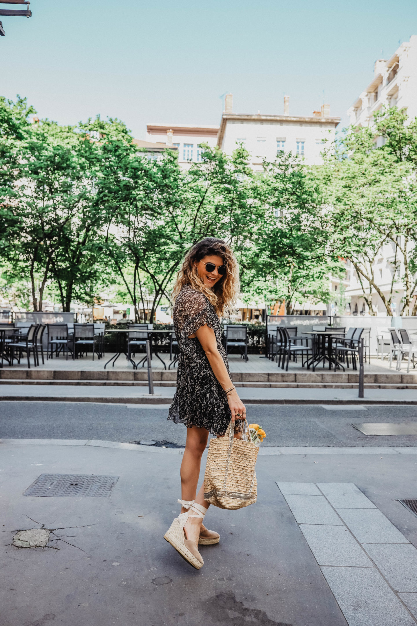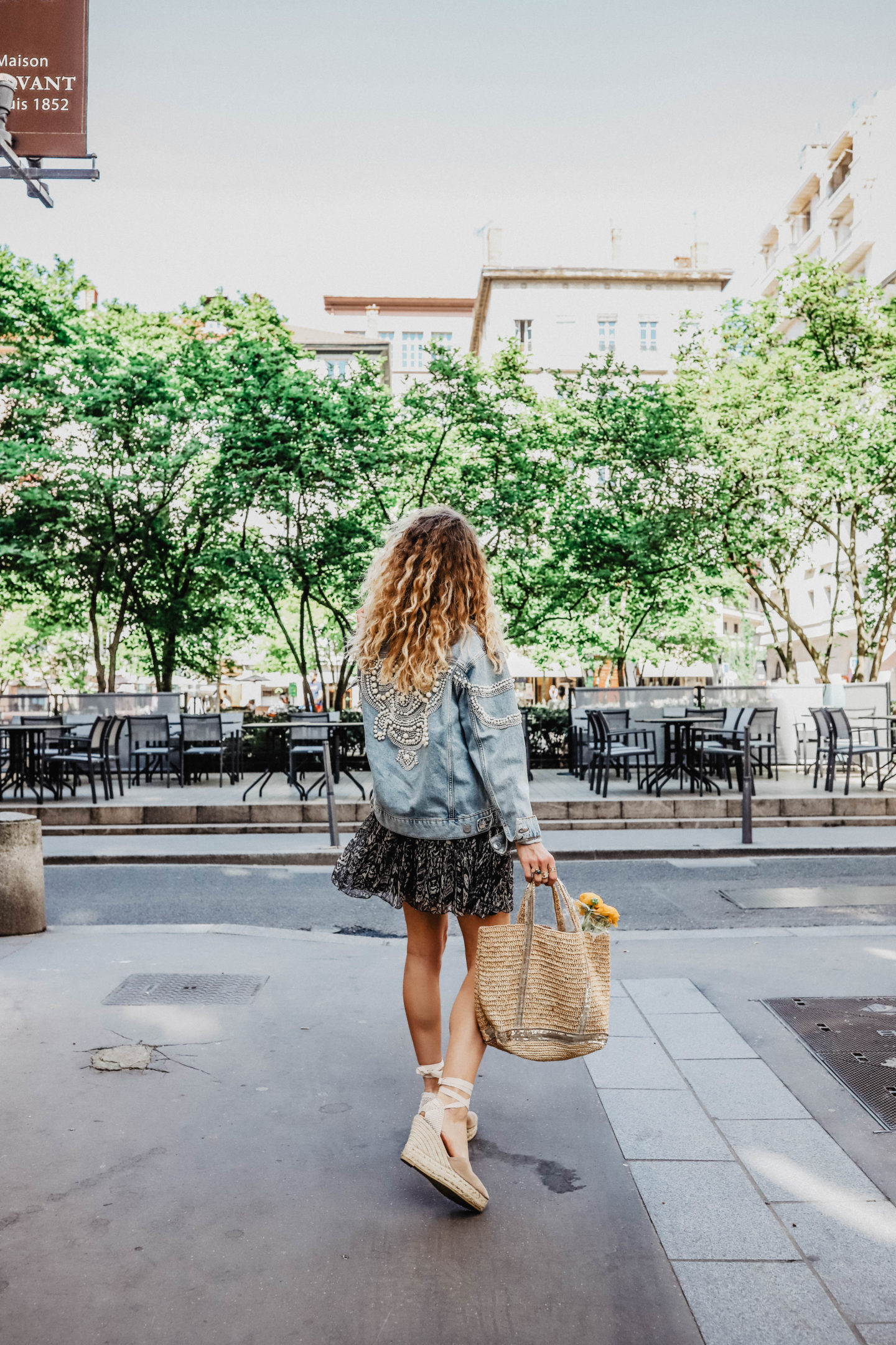 VESTE : SANDRO (TAILLE 2 ) – ROBE : IRO VIA LULLI SUR LA TOILE (TAILLE 38) – ESPADRILLES : MANEBI VIA LULLI SUR LA TOILE – SAC : VANESSA BRUNO VIA LULLI SUR LA TOILE (TAILLE MEDIUM)